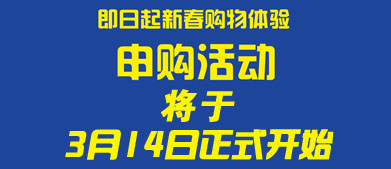 新春购物体验申购活动将于3月14日正式开始